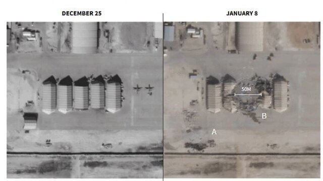 تصاویر ماهوارهای نشان دهنده این هستند که موشکهای ایرانی حداقل هفت ساختمان را در بخشی از پایگاه عینالاسد که متعلق به نیروهای آمریکایی است، تخریب کردهاند.