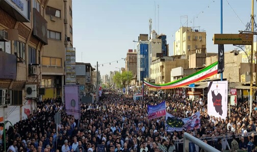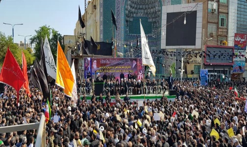 امروز با حضور مردم شهید پرور خوزستان تشییع 25 شهید حادثه تروریستی در اهواز در حال انجام است .