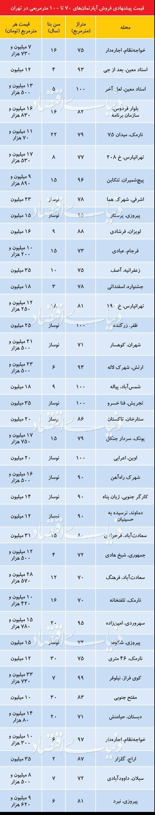 از آنجا که عمده آپارتمانهای عرضه شده در بازار مسکن طی هفتههای اخیر، در گروه واحدهای میانمتراژ با مساحت 70 تا 100 مترمربع بودهاند، نتایج آنالیز و ارزیابی قیمت این گروه متراژی بیش از سایر گروههای ملکی معتبر است؛ ضمن اینکه قواعد قیمتگذاری در املاک نقلی و همینطور آپارتمانهای لوکسمتراژ قدری با رویه عمومی بازار متفاوت است. بررسی قیمتهای پیشنهادی آپارتمان مسکونی در این گروه متراژی نشان میدهد عموما فایلها 5 تا 10 درصد بیشتر از قیمت فروش قطعی املاک مشابه در همان منطقه اعلام شده است که این موضوع نشاندهنده پافشاری فروشندهها به افزایش قیمت مسکن است.