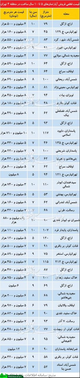 آپارتمانهای «به قیمت رسیده» در منطقه ۴