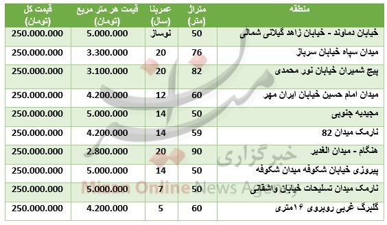 با سرمایه ۲۵۰ میلیون تومانی می‌توان برای خرید واحد‌های نوساز ۵۰ تا ۹۰ متری با عمر بنای ۱ تا ۲۰ سال اقدام کرد.