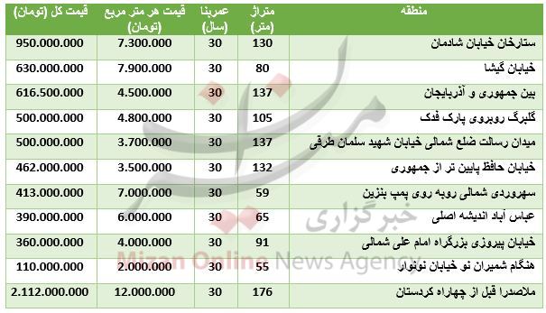 مظنه آپارتمانهای ۳۰ سال ساخت + جدول قیمت