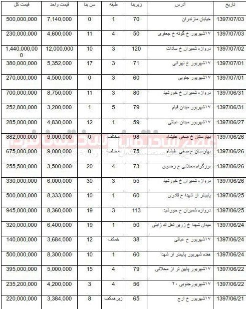 لیست قیمت آپارتمان های فایل شده در مناطق مختلف تهران که به تفکیک متراژ و تاریخ انتشار تهیه شده شده است.