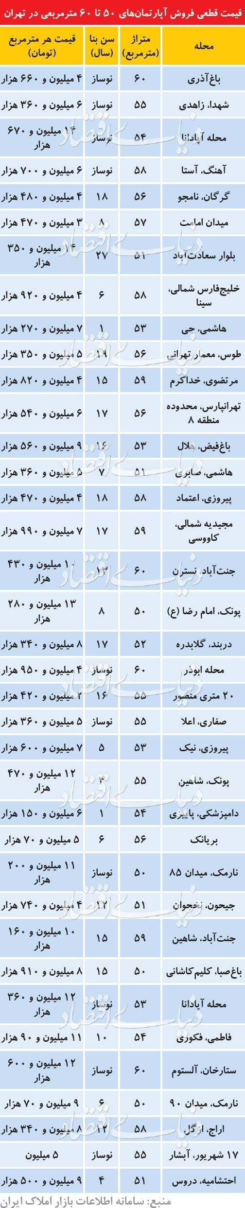 قیمت انواع آپارتمان نوساز و قدیمی در تهران