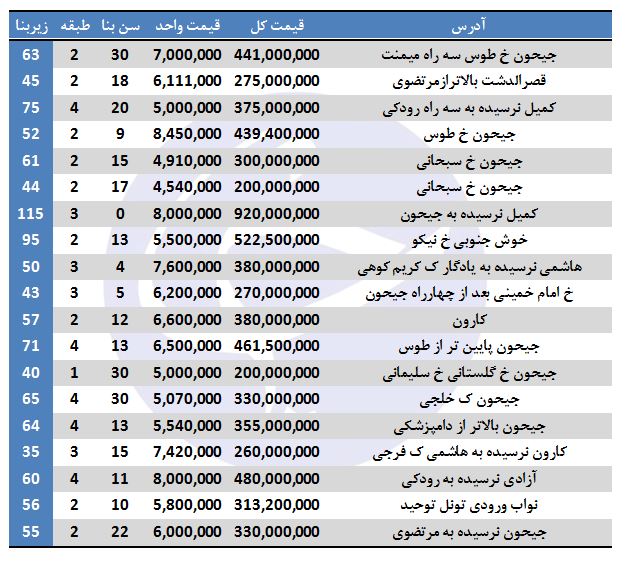 یک دستگاه آپارتمان ۷۱ متری واقع در جیحون پایینتر از طوس با مبلغ ۴۶۱ میلیون و ۵۰۰ هزار تومان معامله میشود.