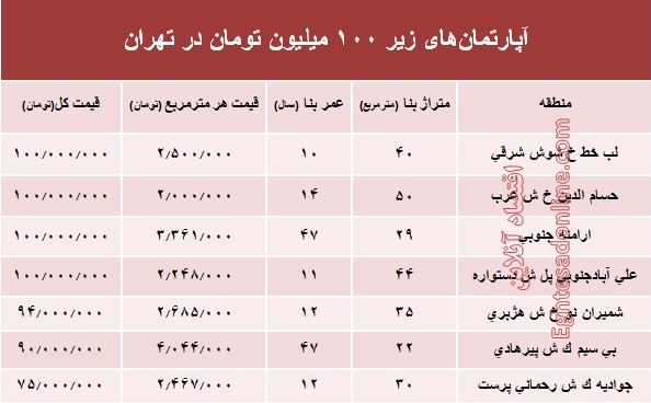 جدول/ با 100 میلیون تومان در کدام محله تهران میتوان خانه خرید؟