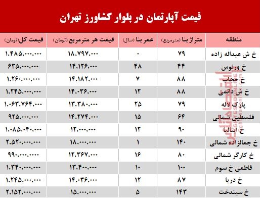 قیمت واحد مسکونی در بلوار کشاورز؟ +جدول