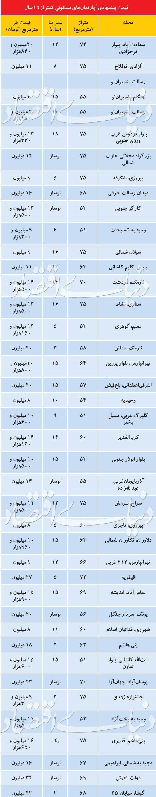 بازار معامله املاک کمتر از ۱۵ سال