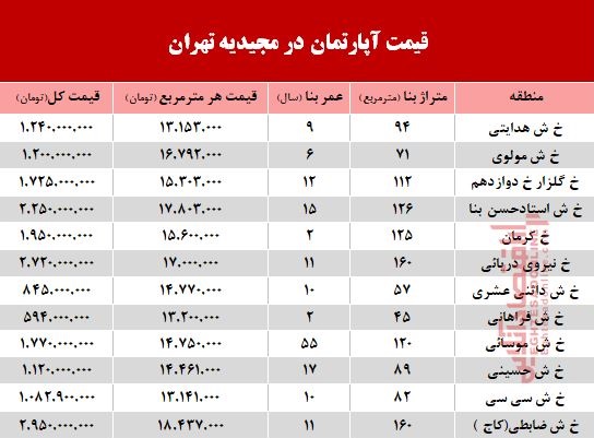 آپارتمان در مجیدیه تهران متری چند؟ +جدول