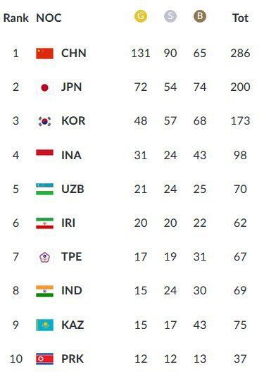 پایان کار کاروان ایران در بازیهای آسیایی ۲۰۱۸ با ۶۲ مدال و ایستادن در رده ششم جدول