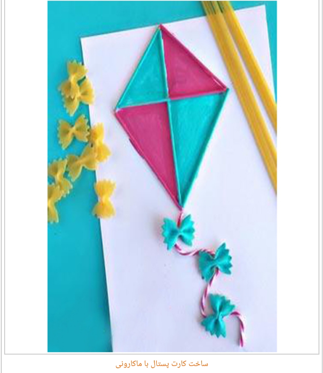 با استفاده از ماکارونی‌های شکلی و ورقه‌های لازانیا، می‌توانید انواع کاردستی‌های زیبا و متفاوت را برای کودکان خود بسازید و آن‌ها را شگفت‌زده کنید.