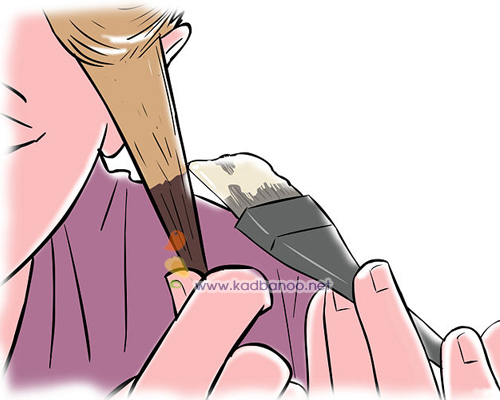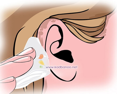 سپس رنگ های مالیده روی گوش ها و گردن و پیشانی را با دستمال کاغذی یا پارچه نم دار پاک کنید.