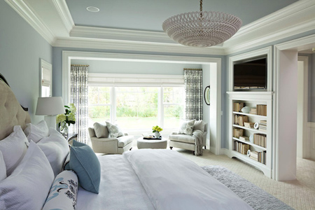 یک اتاق‌ خواب مستر با اندازه متوسط نیز اگر با جزئیات مناسبی همراه شود می تواند کاملا لوکس باشد. کتابخانه ها و قفسه های توکار انتخاب هایی عالی برای نگهداری کتاب های محبوب‌ شما در جایی در دسترس تان هستند. چراغ های دیواری نیز نوری مناسب برای مطالعه در تخت ایجاد می کنند و با وجود آن ها دیگر نیازی به داشتن چراغ مطالعه کنار تخت نیست.