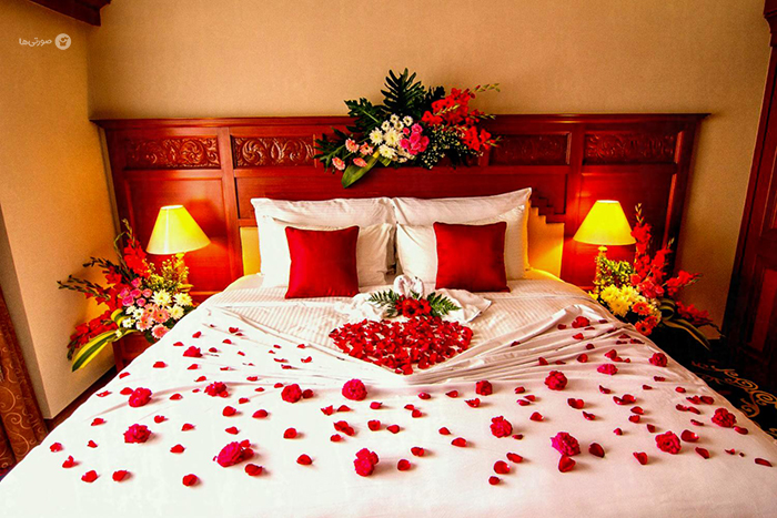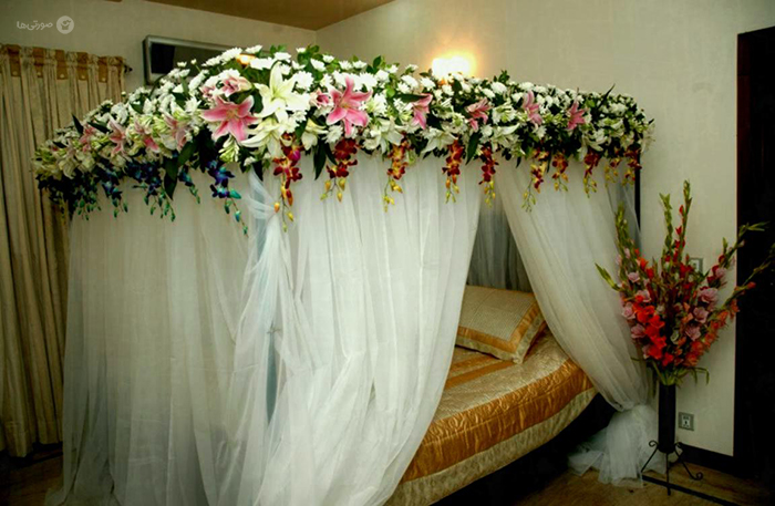 در تزیین اتاق خواب عروس حتما از تور و گل استفاده کنید زیرا که باعث زیباتر شدن تزیین میشوند همچنین بعد از تمام شدن تزیین نور اتاق خواب را تنظیم کنید، هر چه نور کمتر باشد محیط اتاق خواب رمانتیکتر دیده خواهد شد.