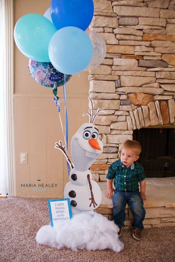 تزیین بادکنک و تهیه لباس تولد با تم فروزن آخرین کارهایی هستند که باید انجام دهید، بادکنک های آبی را با همان آدم برفی معروف تزیین کنید. لباس تولد فروزن هم میتواند یک بلوز دامن با دامن توتو باشد که روی بلوز آن عکس السا به چشم میخورد.