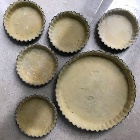 4. برای این مقدار مواد یه قالب ۲۴ سانتی پای یا چند تا قالب کوچکتر کافیه من از ۱ قالب ۱۸ سانتی و ۵ قالب ۶ سانتی استفاده کردم