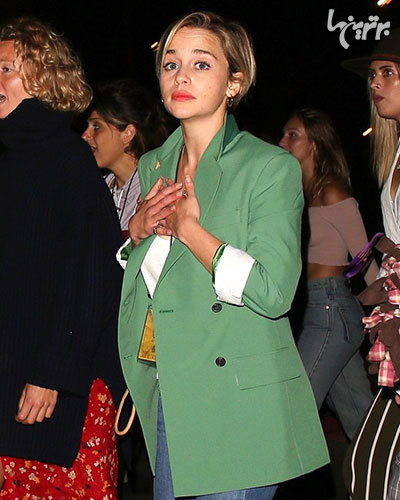 3. امیلیا کلارک با کت سبزی به سبک اورسایز.