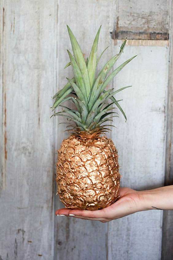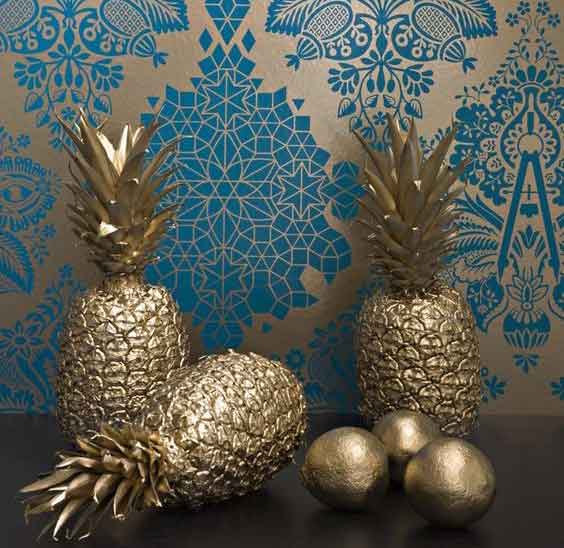 اگر ظاهری لوکس و پر زرق و برق را ترجیح می‌دهید، برای تزیین آناناس شب یلدا از رنگ طلایی یا نقره‌ای بسته به تم مهمانی خود استفاده نمایید.