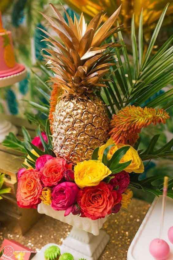 از ترکیب تزیین آناناس و گل غافل نشوید!
