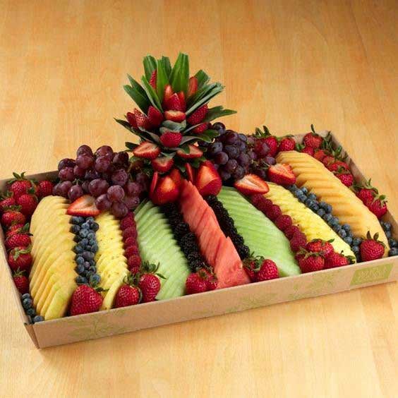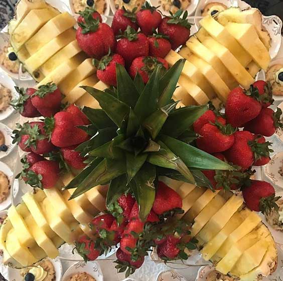 با ترکیب آناناس و میوه‌های دیگر می‌توانید چیدمان‌های مخروطی شکل را نیز امتحان کنید.