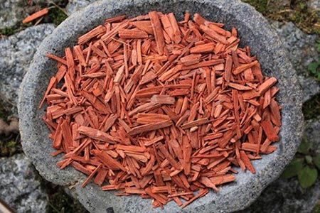 در اندونزی خاک اره صندل قرمز را با برنج می پزند و برای قطع خونریزی می خورند. چوب قرمز آن داروی رفع ناراحتی خون است و در زخم ها و جراحت های مختلف از آن برای قطع خونریزی و از بین بردن چرک و عفونت استفاده می کنند. بومی ها در تایوان از این گیاه به عنوان یک داروی سری برای معالجه مسمومیت استفاده می کنند. برای تقويت ديد چشم از دمكرده گياه صندل سرخ استفاده میكنند.
