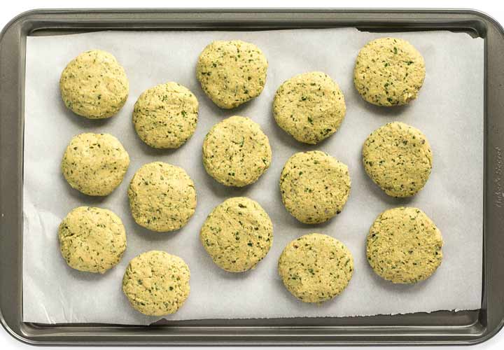 محتویات را بهشکل دلخواه خود در بیاورید. تقریبا ۲۰ عدد فلافل با عرض ۲٫۵ سانتیمتر درست میشود.