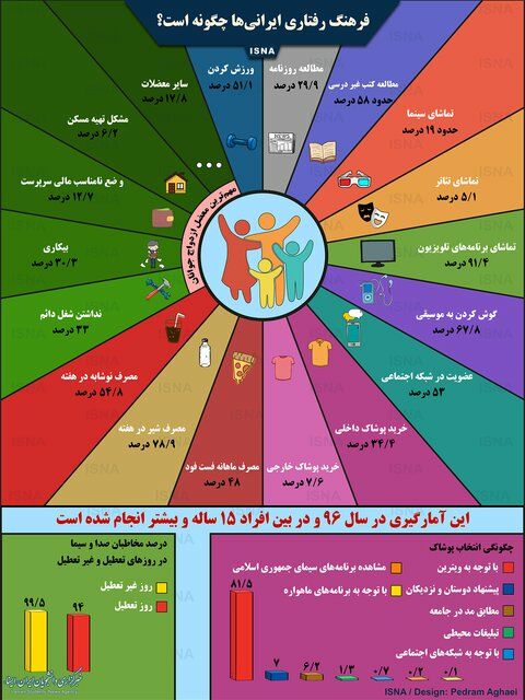 اینفوگرافی/فرهنگ رفتاری ایرانیان؛ از سینما تا شبکه‌های اجتماعی