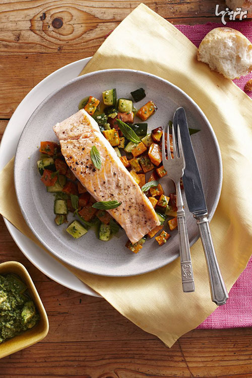 ماهی سالمون، با وجود اسیدهای چرب اشباع نشده و مواد معدنی خود، یک گزینه ایده آل برای شام شما خواهد بود. مصرف این ماده، ویتامین دی بدن شما را تامین کرده و از ابتلا به بیماری های مزمن جلوگیری می کند. همچنین 25% از ویتامین ب 6 روزانه خود را نیز که به آرامش و کاهش استرس کمک می کند، می توانید از این ماده دریافت کنید.