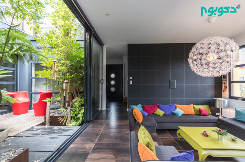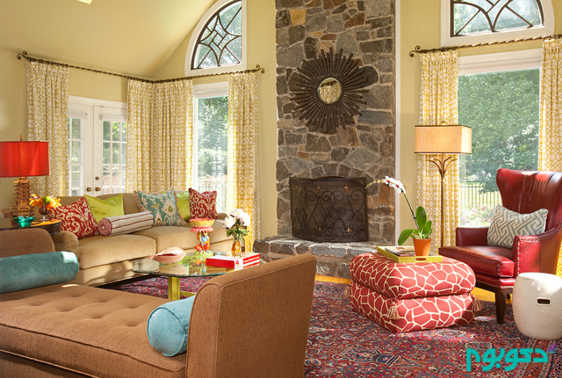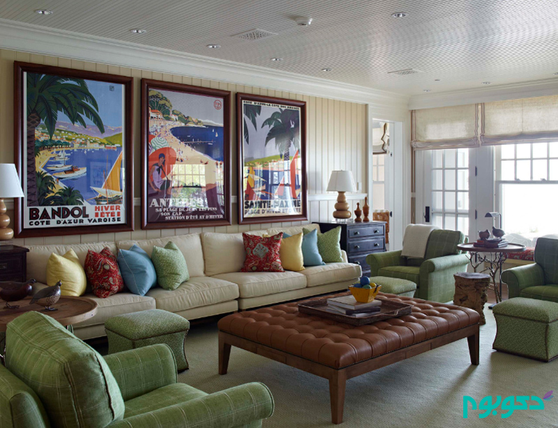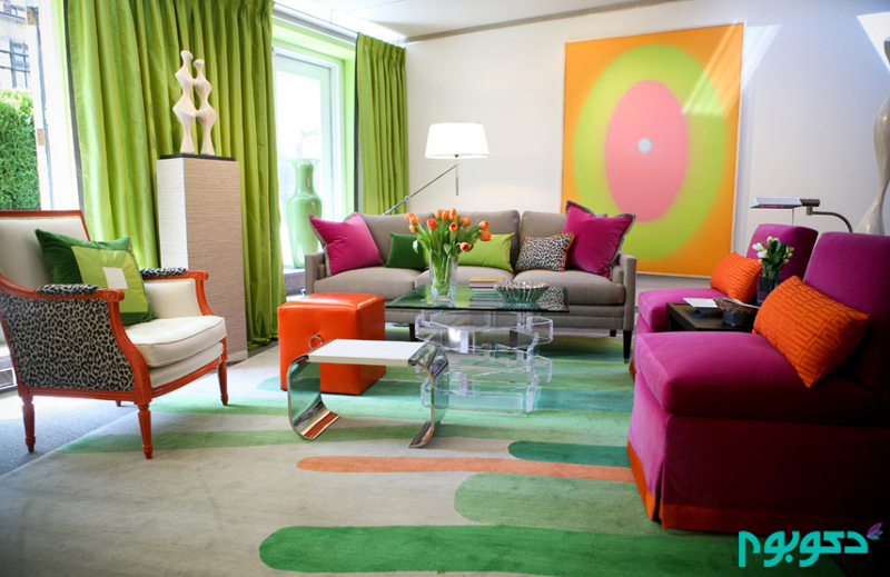 اما از مشکلات استفاده از رنگهای شاخص تکراری شدن میباشد و اینکه رنگ آمیزی مجدد دیوارها با رنگ جدید معطوف به صرف زمان و هزینه است که در همه زمانها مقدور نمیباشد همینطور تعویض مبلمان در طول زمان برای ایجاد تنوع مقرون به صرفه نخواهد بود بنابراین یکی از بهترین راهکارها برای تزریق رنگهای شاد و انرژی بخش به منزل استفاده از قاب عکس ها، گلدانهای رنگی و کوسنها با طرحها و بافتهای متفاوت میباشد در ادامه با نشیمنهایی جذاب که با کوسنهای رنگی تزیین شده اند که میبینید.