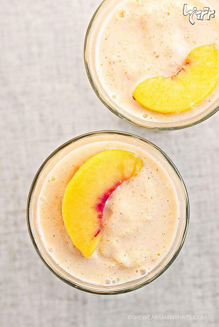 ۱- شیر و هلوی یخ زده را در مخلوط کن بریزید.