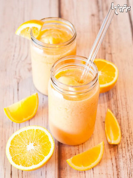 ۱- یخ، پرتقال، ماست و شیر را در مخلوط کن بریزید.