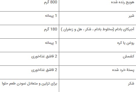 این دسر معمولاً گرم سرو می گردد و همراه با یک اسکوپ بستنی وانیلی یک دسر بسیار خوشمزه را تشکیل می‌دهد. با این مقدار مواد برای 8 نفر می‌توانید حلوا درست کنید. این دسر در مدت 55 دقیقه آماده می‌شود.