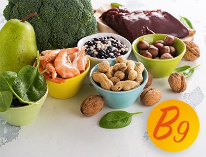 اسید فولیک نوعی از ویتامین B است که در کلم بروکلی، اسفناج، نخود فرنگی، قارچها، سخت پوستانی مانند خرچنگ و در میوههایی مانند موز و خربزه یافت میشود. کمبود فولات با بیماریهای روانی، زوال عقلی بر اثر سن یا ناهنجاریهای مغزی در جنین نیز مرتبط است.