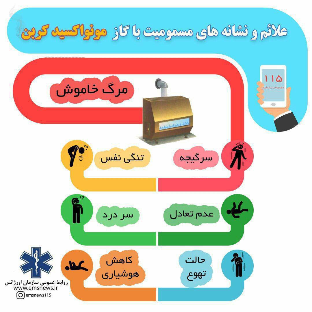 علائم و نشانه‌های مسموميت با گاز مونوكسيد كربن + اینفوگرافی