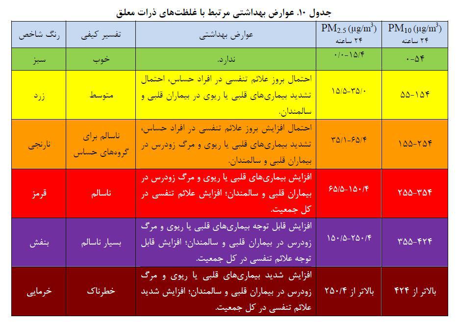 عوارض بهداشتی مرتبط با غلظت ذرات معلق