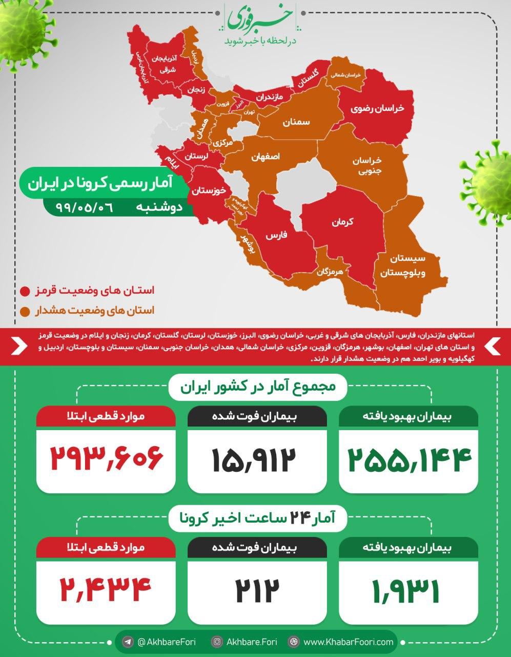 ۲۵استان در وضعیت قرمز و هشدار/۲۱۲نفر دیگر را از دست دادیم