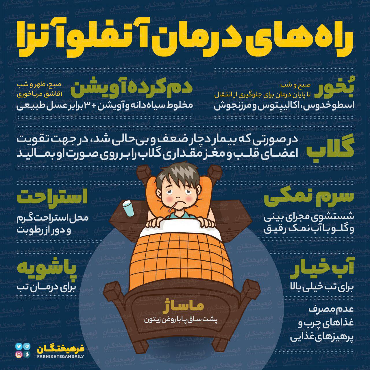 با كاهش دماي هوا، وزش باد و آغاز بارندگي، احتمال ابتلا به سرماخوردگي و آنفلوآنزا افزايش پيدا ميكند. راههای درمان آنفولانزا برای شما ارائه شده است: