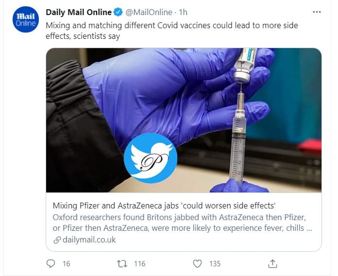 به گفته محققان آکسفورد، مخلوط فایزر و آسترازنکا عوارض بدی به همراه دارد.