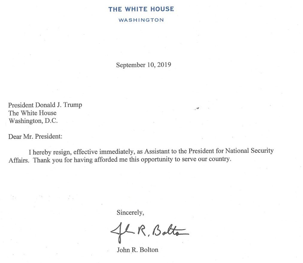 متن کوتاه استعفانامه بولتون را در ادامه بخوانید.