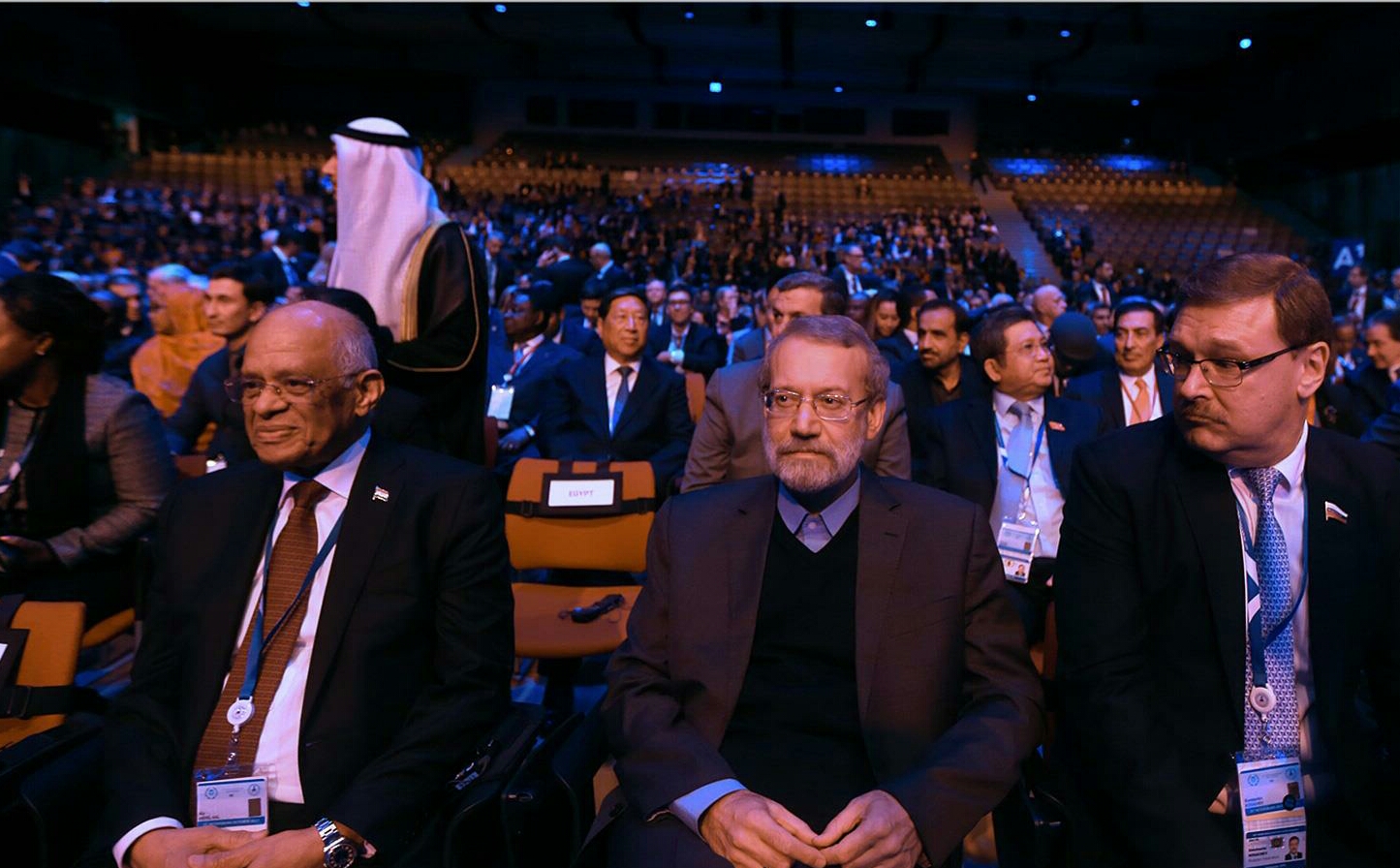 علی لاریجانی رئیس مجلس شورای اسلامی و هیأت همراه در مراسم افتتاحیه یکصد و سی و هفتمین اجلاس IPU در سن پترزبورگ روسیه حضور پیدا کردند.