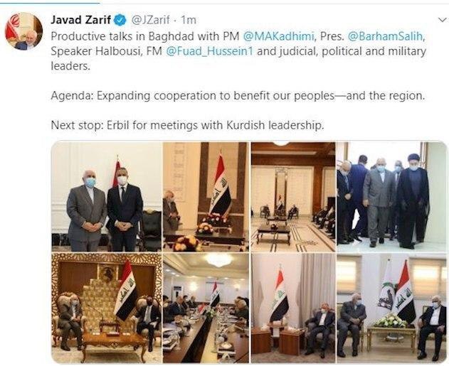 گزارش توییتری ظریف از سفرش به عراق