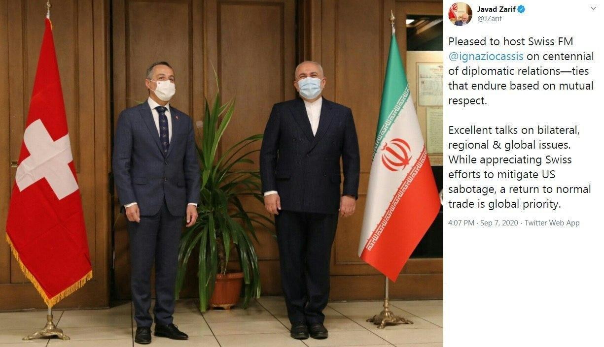 وزیر امور خارجه کشورمان در توییتی محورهای دیدارش با همتای سوئیسی خود را تشریح کرد.