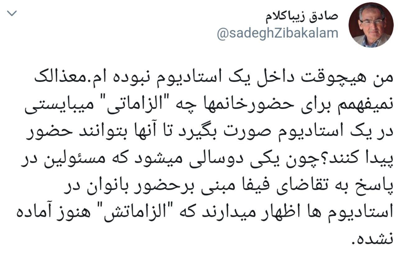 خاک بر سر مردان ایران.اگرمردان.چند مسابقه را تحریم میکردند کاربه فیفا نمیکشید.ماتابع زور هستیم