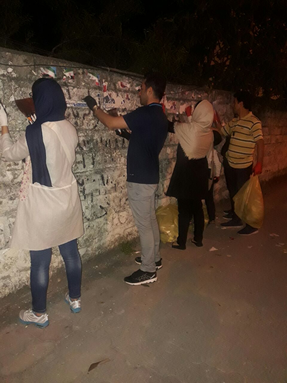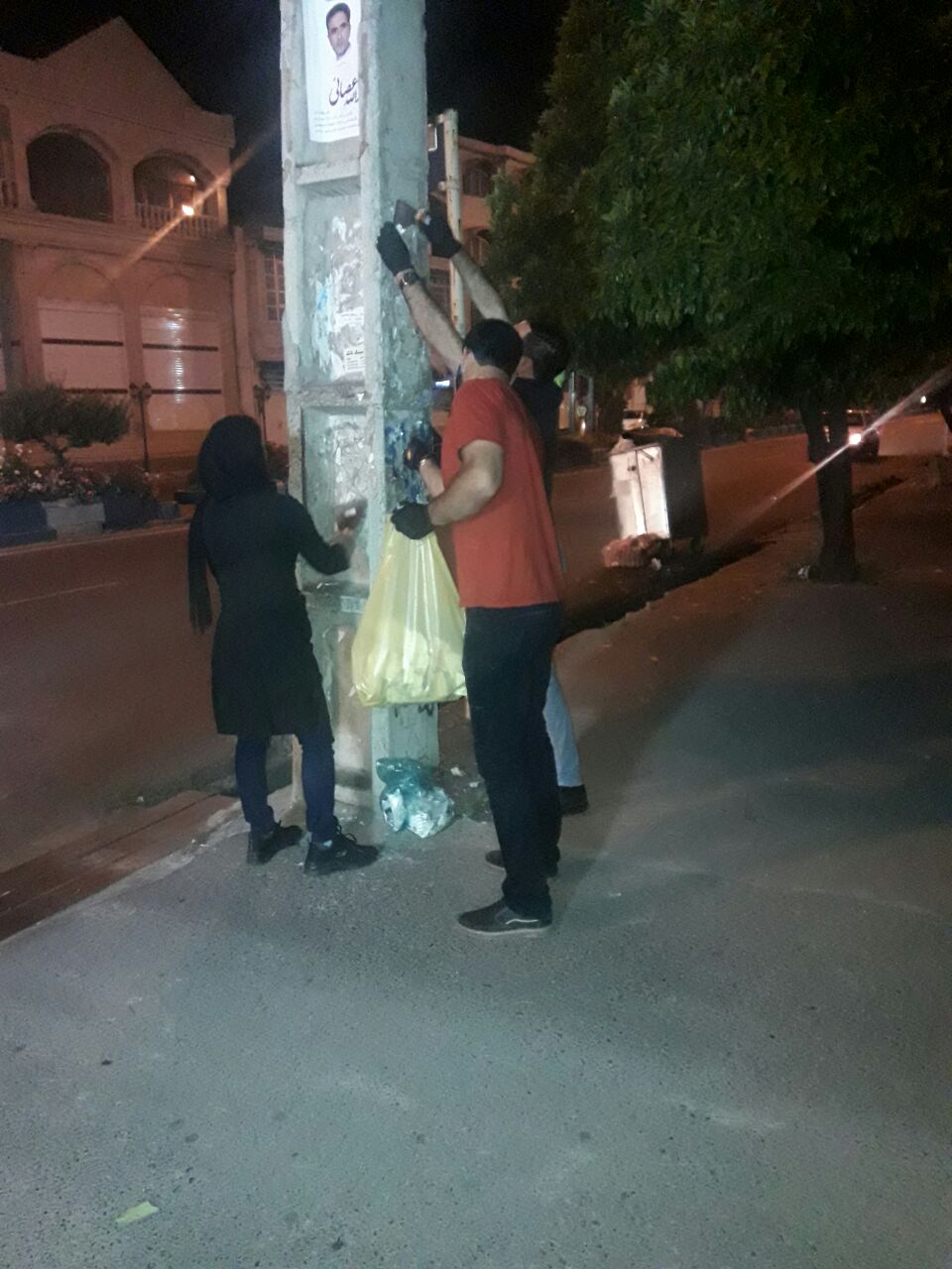 مردم در حال پاکسازی شهر از تبلیغات شوراها