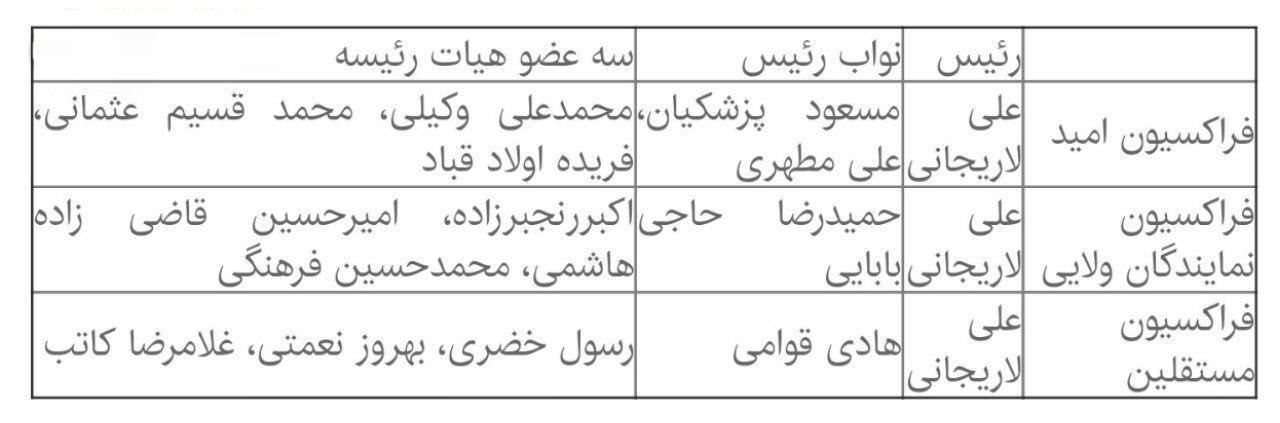 گزینههای سه فراکسیون امید، ولایی و مستقلین برای انتخابات هیات رییسه مجلس