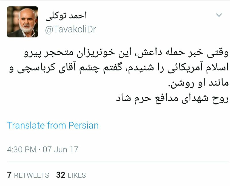 احمد توکلی نماینده اسبق در توییترش نوشت: