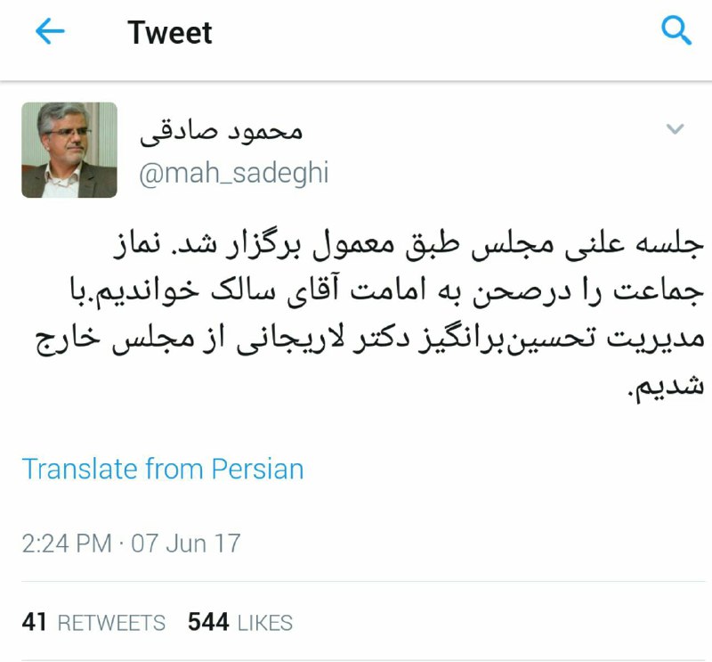 محمود صادقی نماینده مجلس هم در توئیترش نوشت: