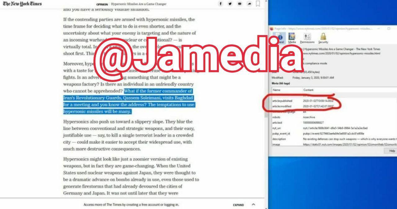 نکته جالب اما اینجاست که درباره موشک های شلیک شده، پیش تر اطلاعاتی منتشر شده بود. گرای دقیق و برنامه ریزی برای ترور و شهادت سپهبد حاج قاسم سلیمانی در نیویورک تایمز شاید اتفاقی نباشد.