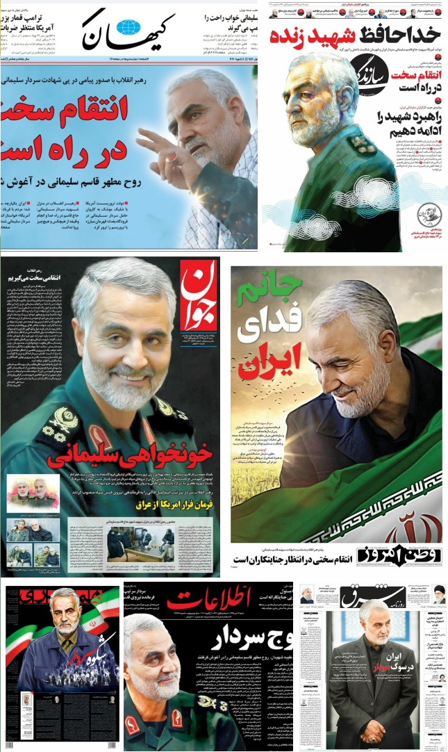 صفحه یک روزنامه های فردا (شنبه 14 دی) تیتر و عکس اصلی خود را به سردار سلیمانی اختصاص دادند.