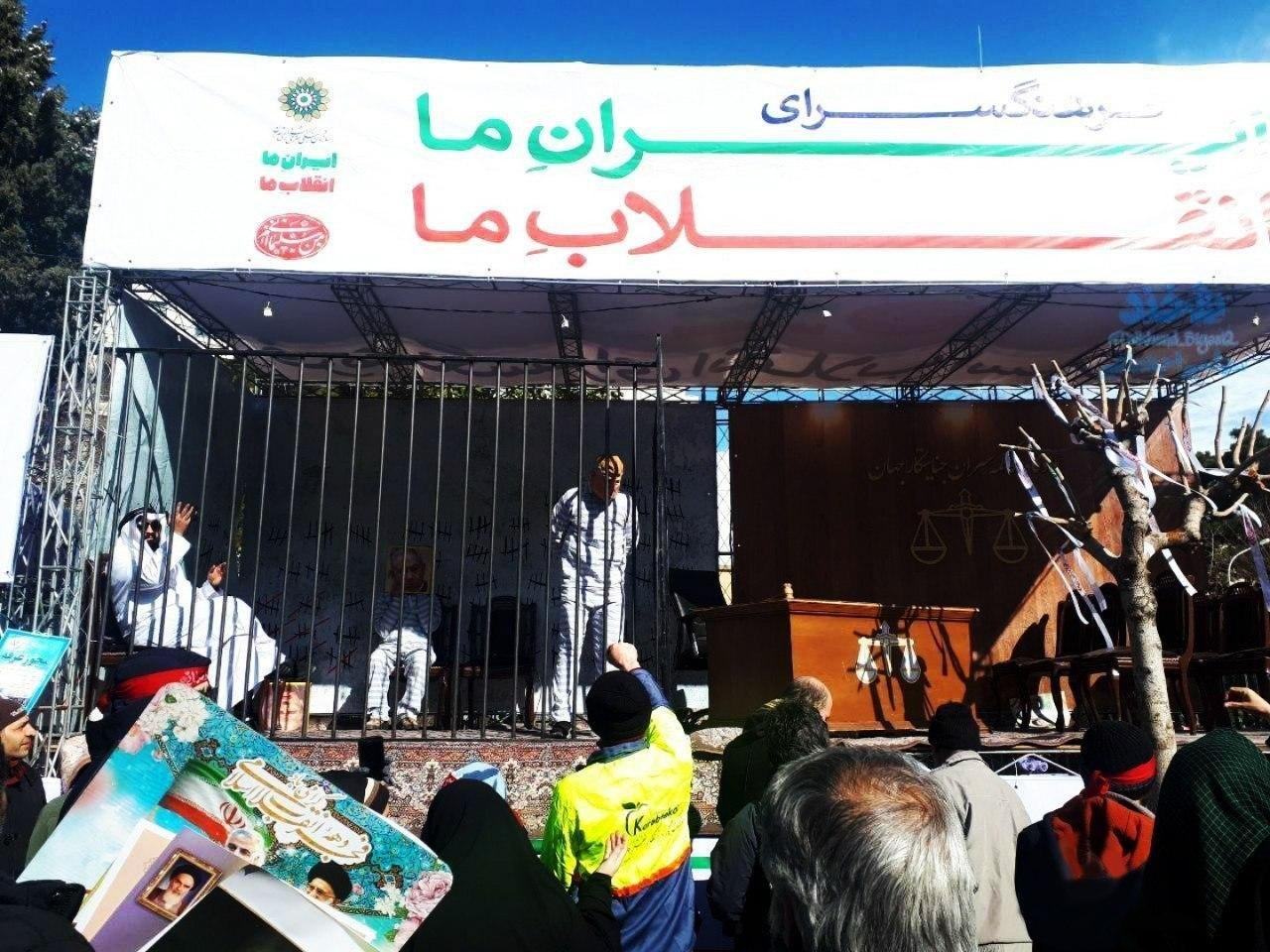 تصویر زیر عکسی جالب است از راهپیمایی 22 بهمن. یکی از شرکت کنندگان در راهپیمایی به صورت نمایدن عروسک ترامپ را در زندان انداخته است.